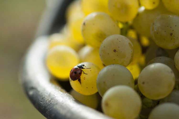 65 % Grüner Veltliner, 15 % Riesling, 13 % verschiedene weiße Burgundersorten, 5 % Pinot Noir und Muskat Ottonel sowie Sauvignon blanc.