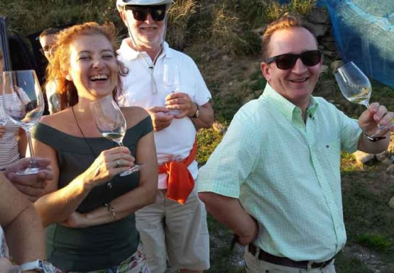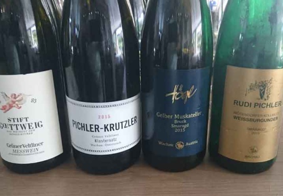 Auf der Rückfahrt von Krems nach Weissenkirchen erlebten wir eine kommentierte Weinverkostung durch Manfred Patzalt. Korrespondierend zu den Weinrieden, an denen man vorbeifuhr, verkosteten wir Weine bekannter Winzer. Wein Nr. 1 war ein Grüner Veltliner (Jg. 2015) Messwein des Weingutes Stift Göttweig. Es folgte ein Grüner Veltliner des bekannten Weingutes Pichler-Krutzler aus Dürnstein. Der Klostersatz 2015 hatte Apfel- und Birnennoten sowie einen langen Abgang.