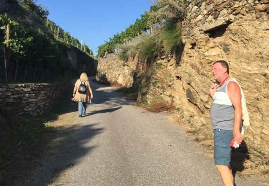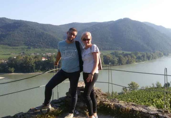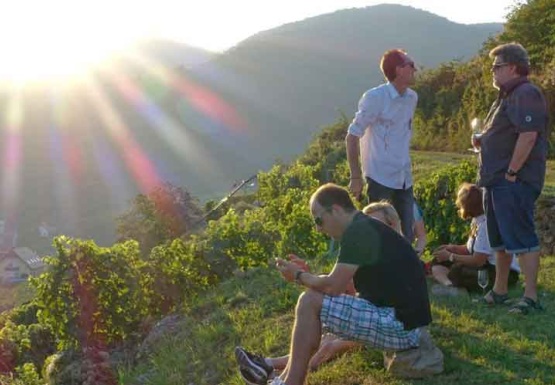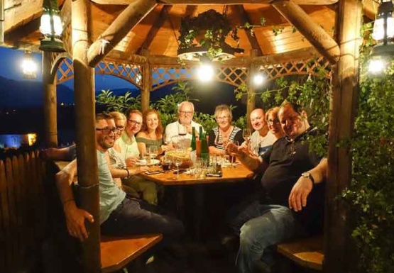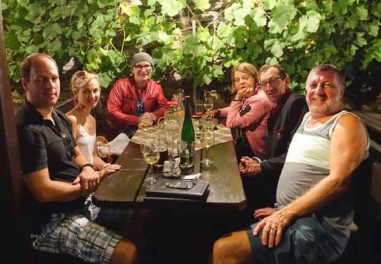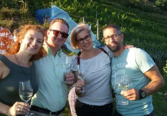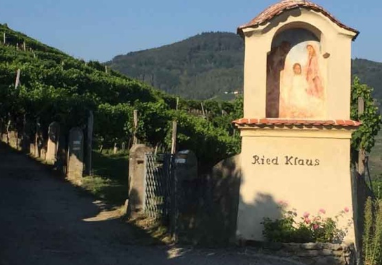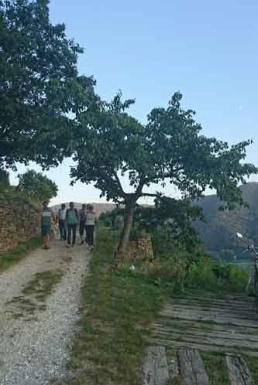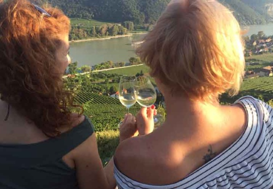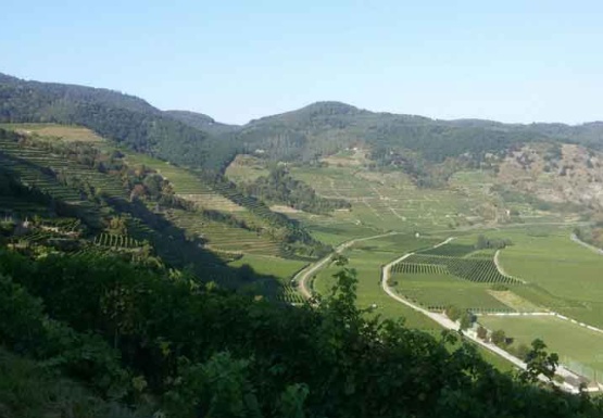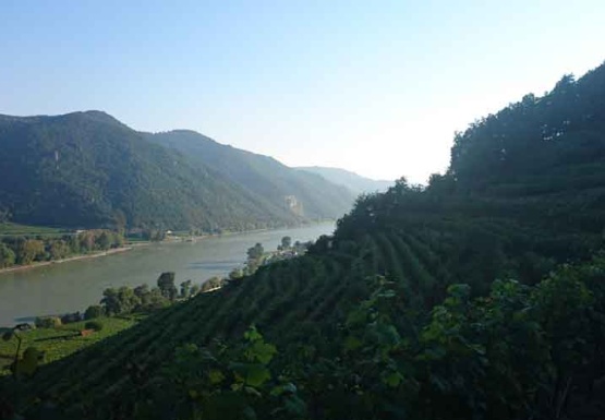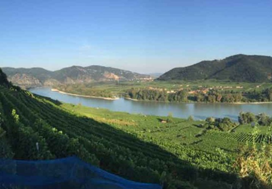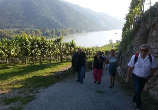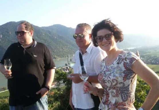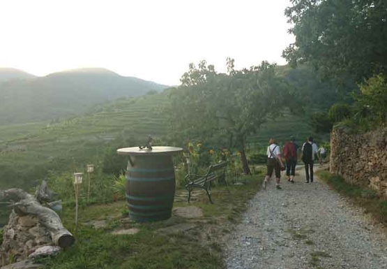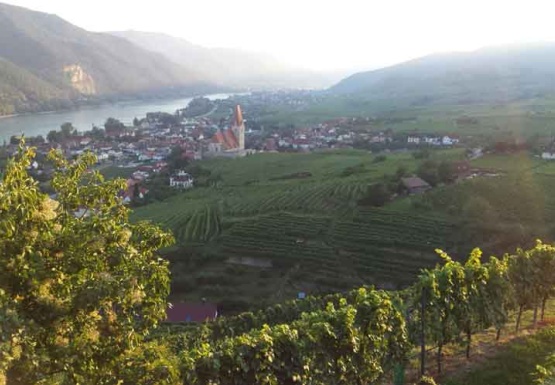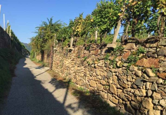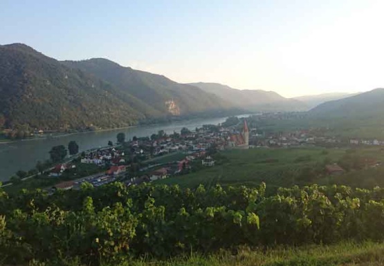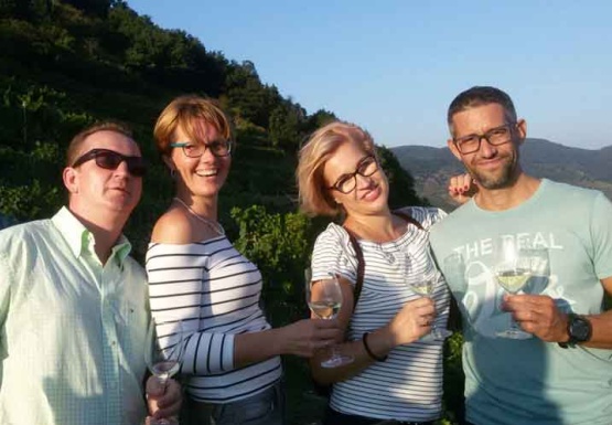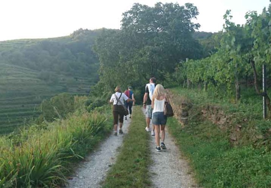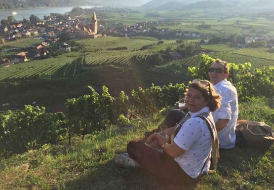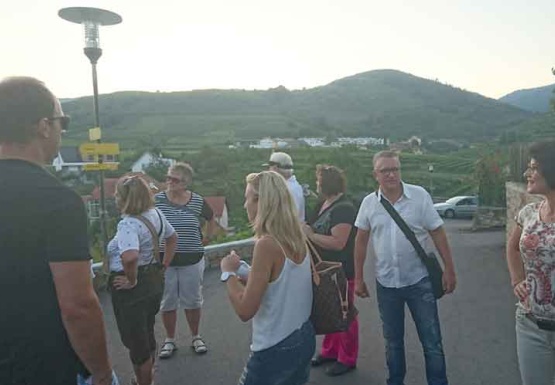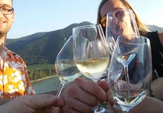 In Weissenkirchen erkundeten wir die bekannte Riede Achleiten. Nach einer knappen Stunde Wanderung und kurz vor dem Abstieg wartete der Winzer Trautsamwieser auf einer Aussichtsplattform mit einer kleinen „Stärkung“ auf: es gab einen Grünen Veltliner und Riesling des Weingutes zu verkosten. Dabei genossen die Weinwölfe die grandiose Aussicht auf die Wachau.