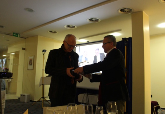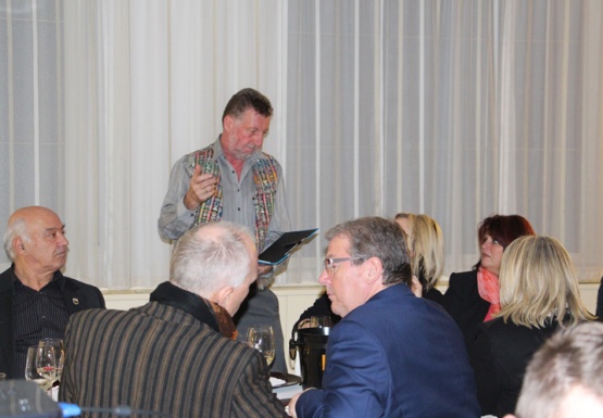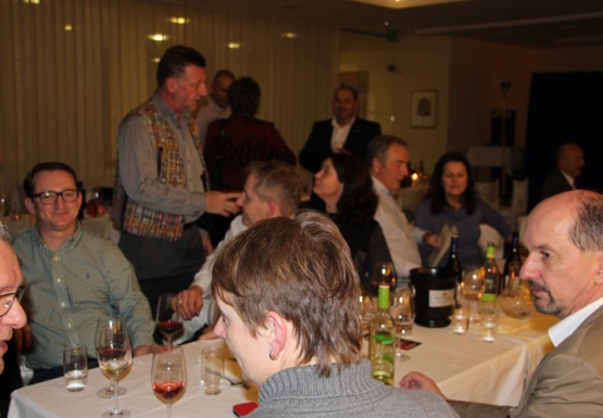 Zum Empfang gab es einen Beaujolais (gesponsert vom Clublokal Hotel Gürtler). Um 19:00 erfolgte die Begrüßung durch Obmann Jürgen Nobis, welcher einen kleinen Rückblick über die 5 Abende des abgelaufenen Jahres gab. Danach wurden 5 Vereinsurkunden und Anstecknadeln mit Vereinswappen an neue Mitglieder überreicht, womit sich der aktuelle Mitgliederstand auf 34 Personen erhöht.