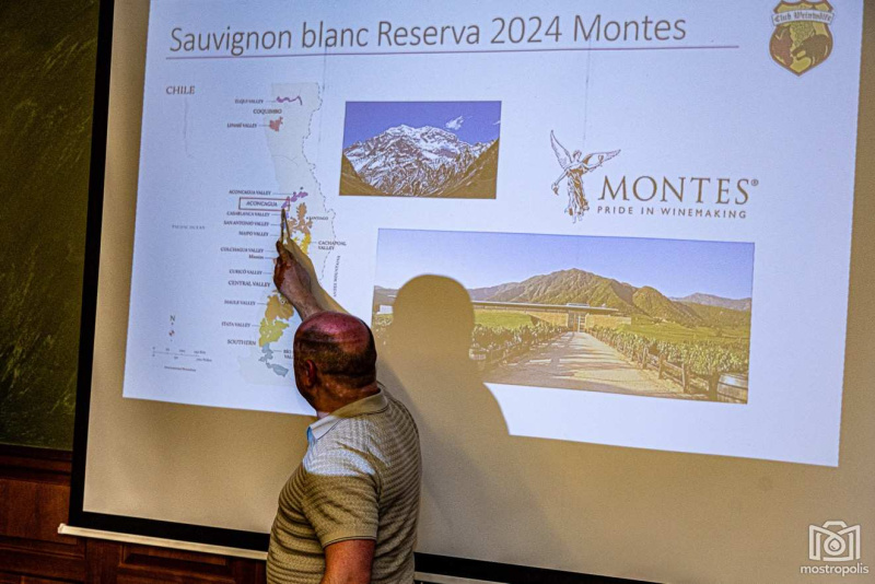 Roland durfte den 1. Wein vorstellen: Montes Sauvignon blanc 2024 aus dem Aconcagua-Valley (Unterregion Aconcagua Costa). Er duftete nach Orangenblüte, Mango, Stachelbeere, Pfirsich, Zitrone und grünem Gras. Er wächst in der Nähe der Pazifikküste auf lehmig-sandigem Boden.